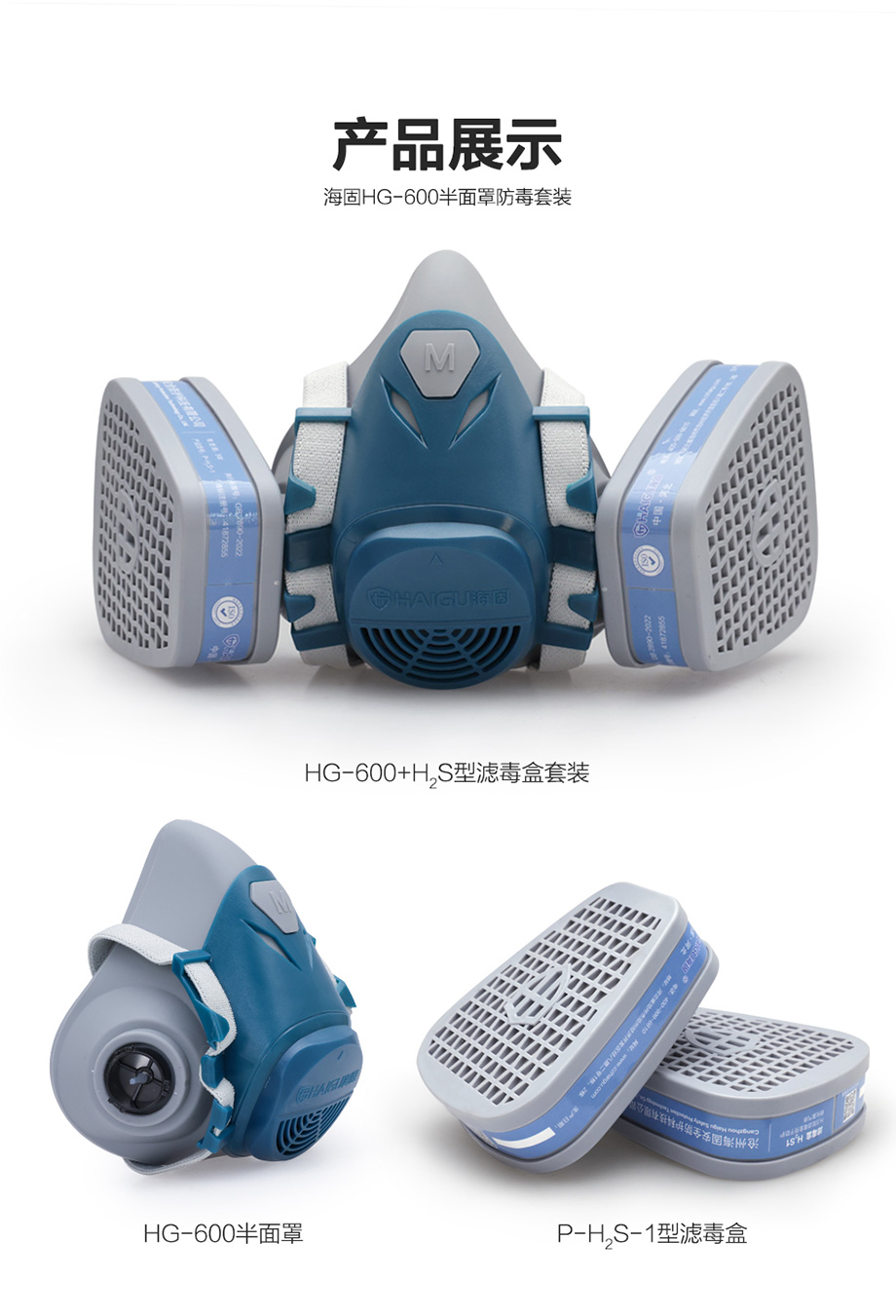 海固600半面罩+P-H2S-1濾毒盒 防護硫化氫氣體套裝