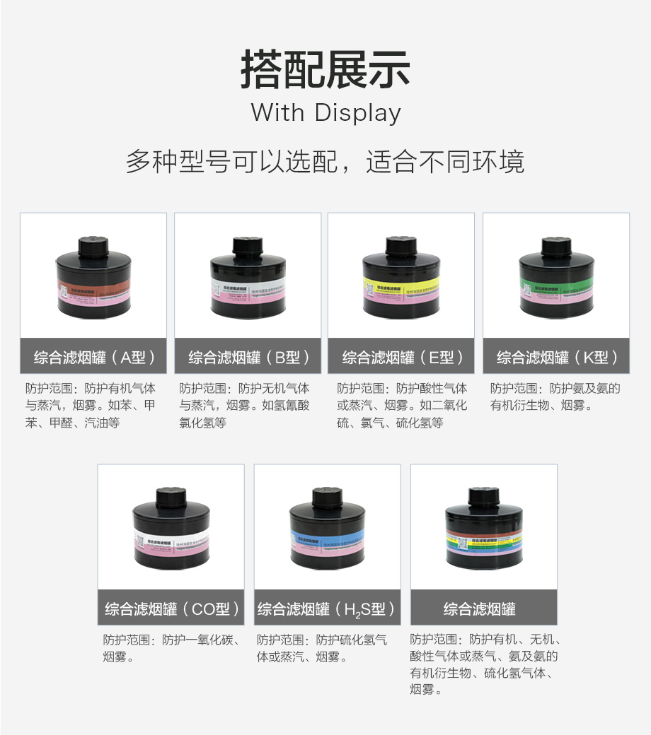 海固800全面罩+Z-E-P2-2綜合濾煙罐 防護酸性氣體或蒸氣、煙霧等