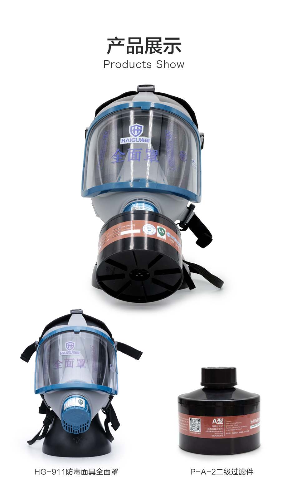 海固911全面罩+P-A-2濾毒罐 有機氣體防護套裝
