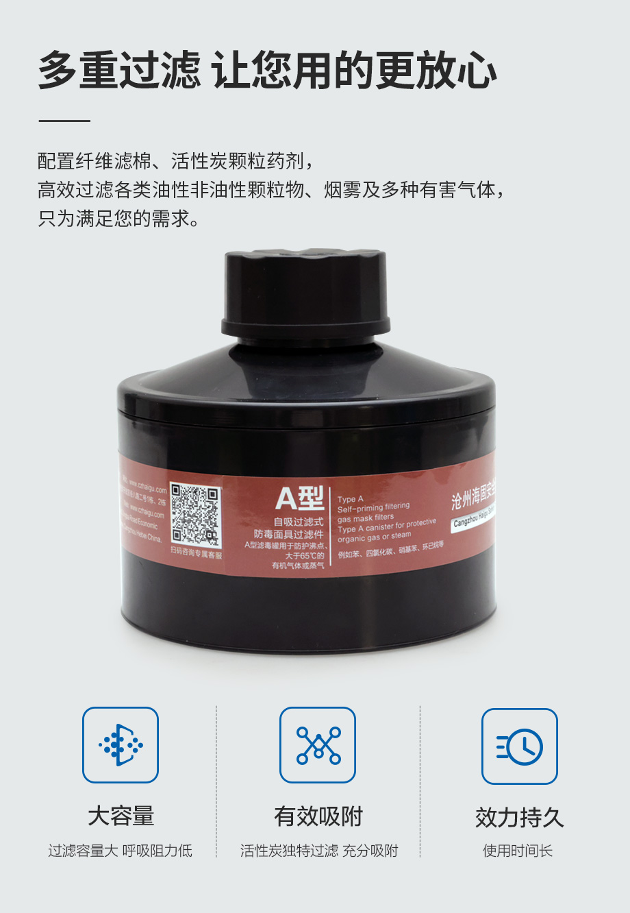 產品規格:寶藍灰硅膠/ABS濾毒罐