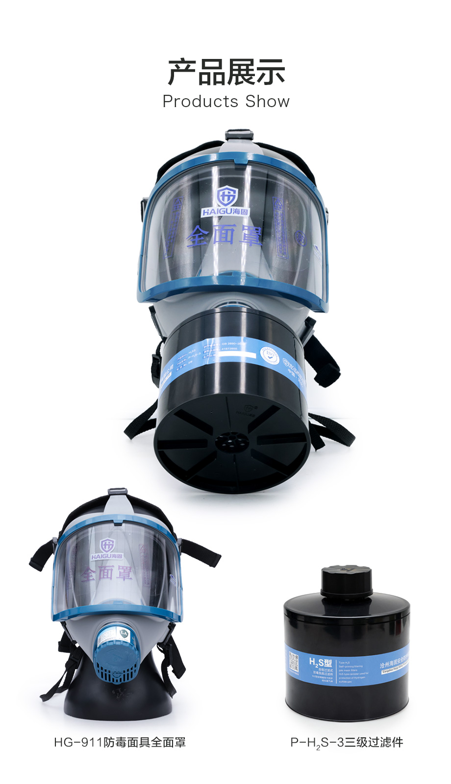 海固911全面罩+P-H2S-3濾毒罐 硫化氫氣體防護