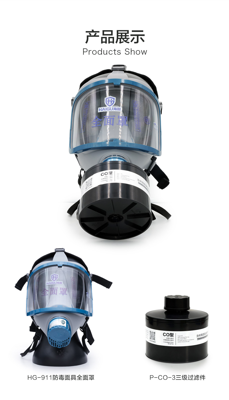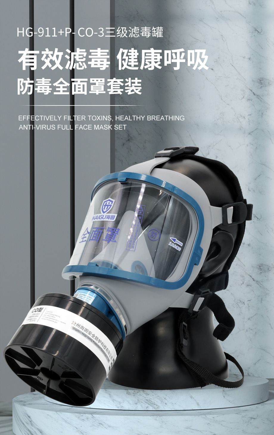 海固911全面罩+P-CO-3濾毒罐 一氧化碳防護套裝
