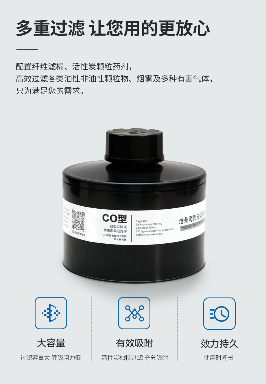 產品規格:寶藍灰硅膠/ABS濾毒罐