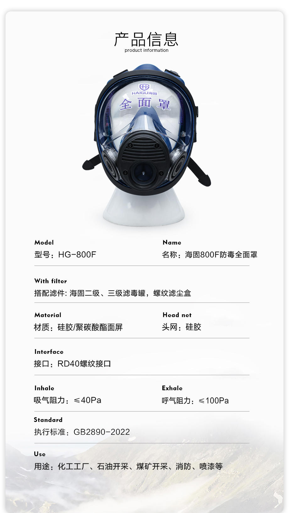 - 800全面罩防毒面具套裝