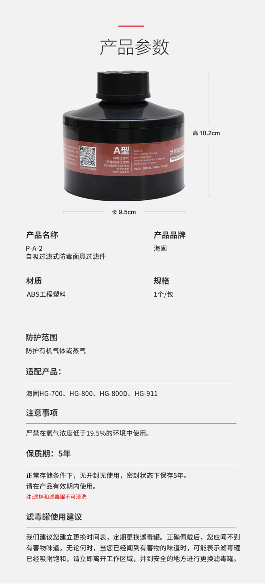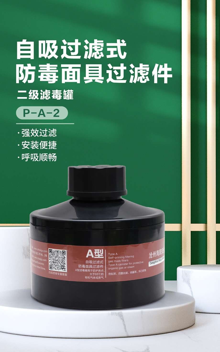 海固P-A-2濾毒罐 苯、四氯化碳、硝基苯、環己烷等有機氣體防護
