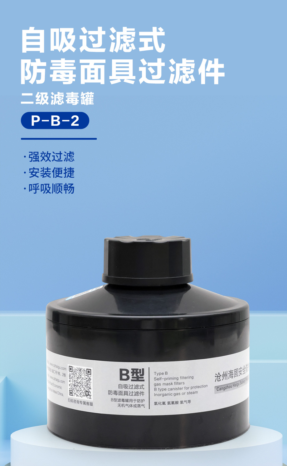 海固P-B-2濾毒罐 無機氣體 氯化氫、氫氰酸、氯氣 綜合防護