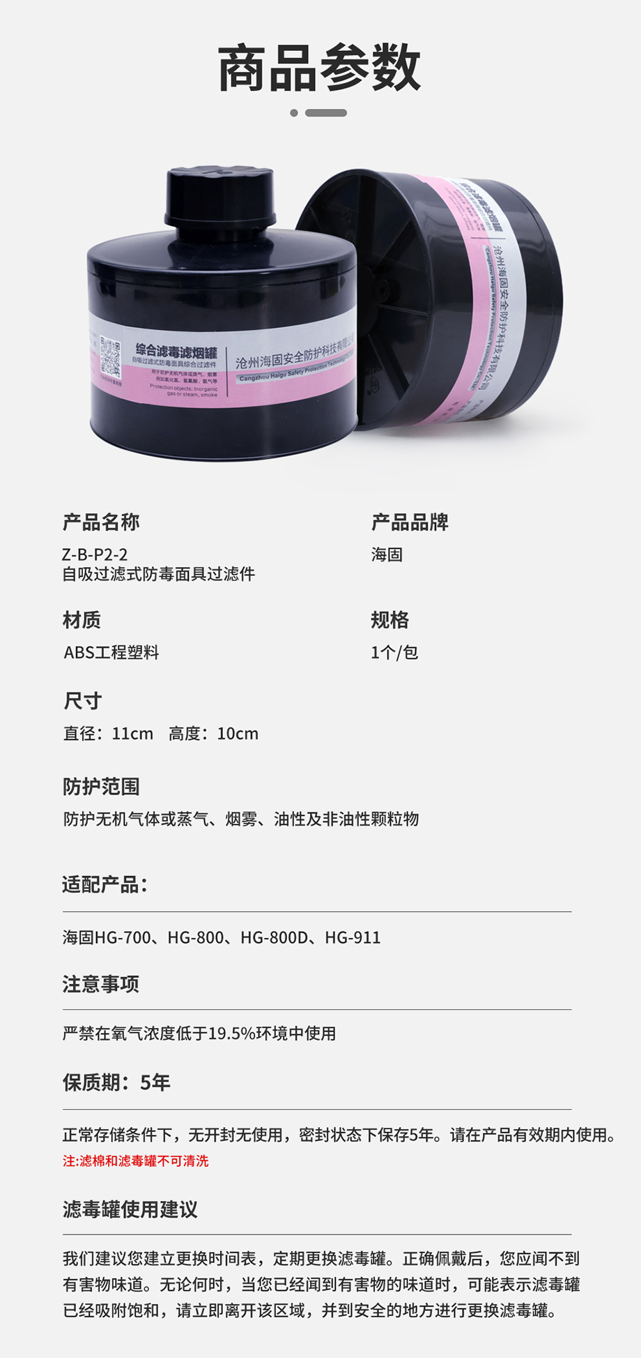 海固Z-B-P2-2/P3-2綜合濾毒濾煙罐 防護(hù)無(wú)機(jī)氣體或蒸氣、煙霧