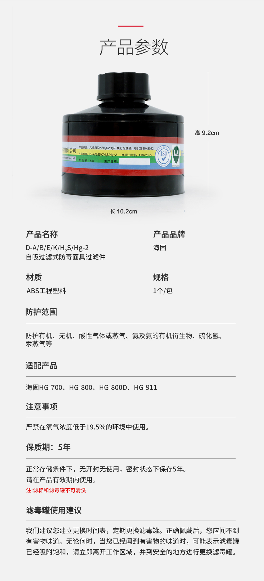 海固D-A/B/E/K/H2S/Hg-2 多功能型綜合多氣體防護濾毒罐
