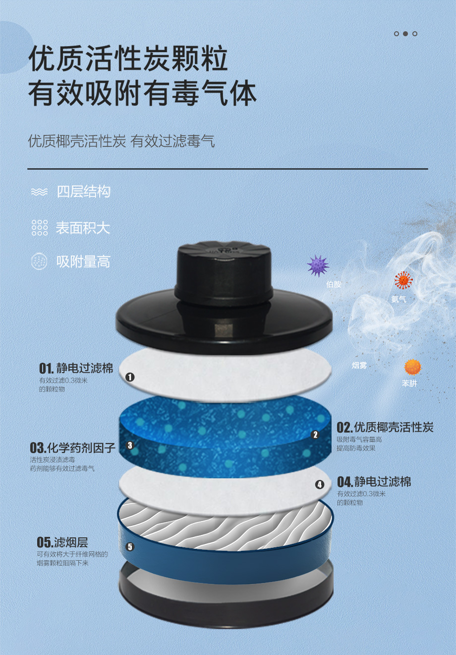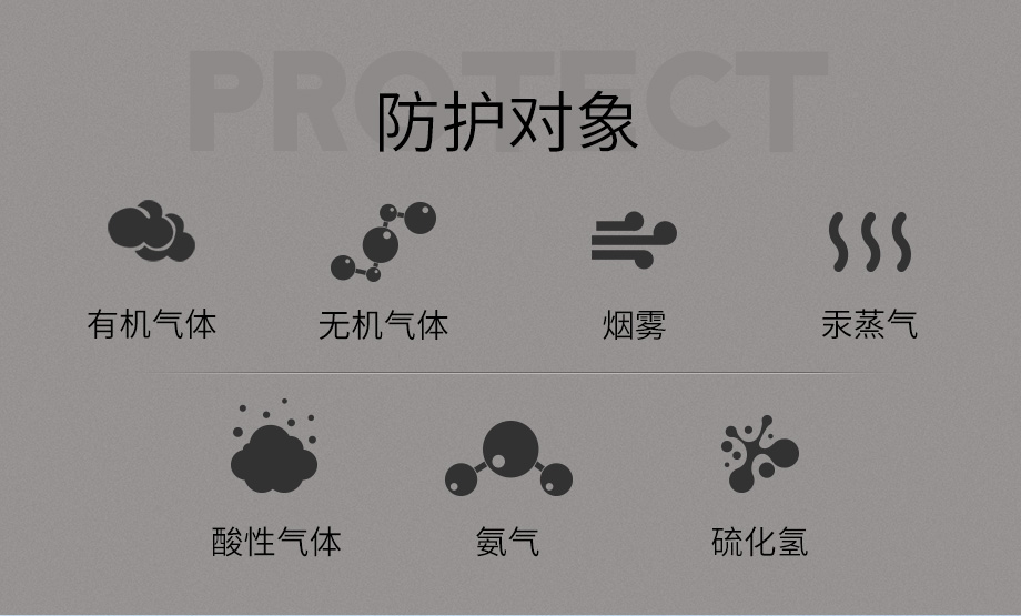 防護范圍:主要防護有機、無機氣體、酸性氣體、氨氣、硫化氫、汞蒸氣及煙霧