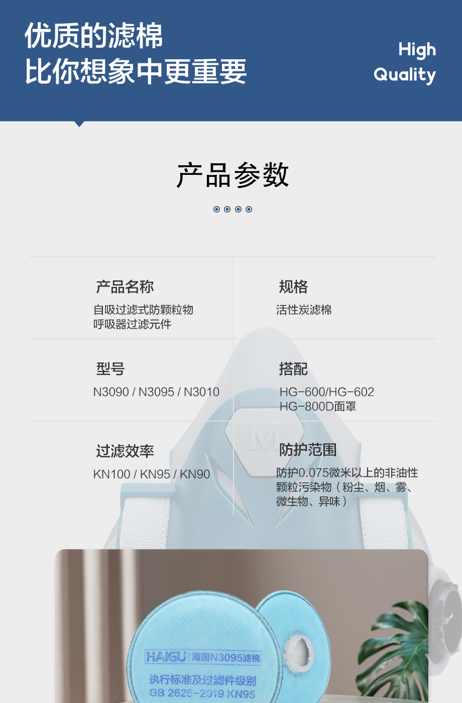 海固活性炭濾棉 3系列KN卡扣濾棉 KN100/KN95/KN90非油性顆粒物