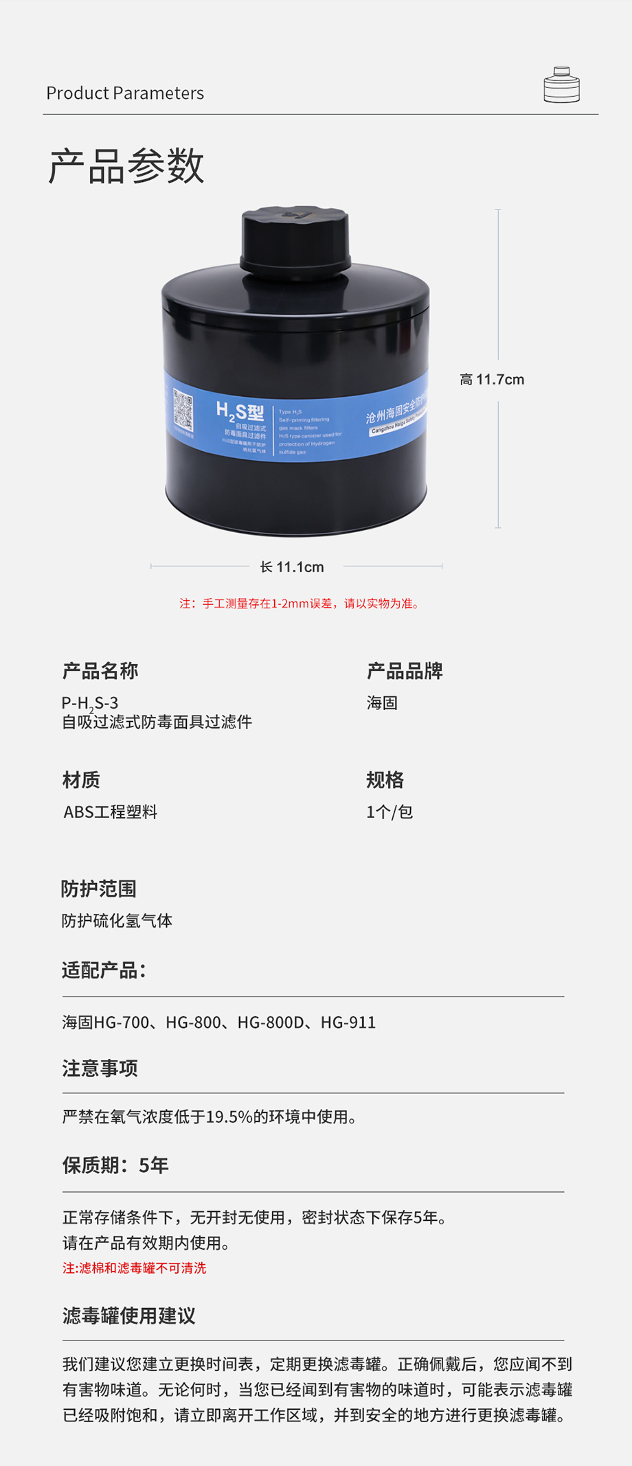 海固P-H2S-3濾毒罐 防護硫化氫氣體三級濾毒罐