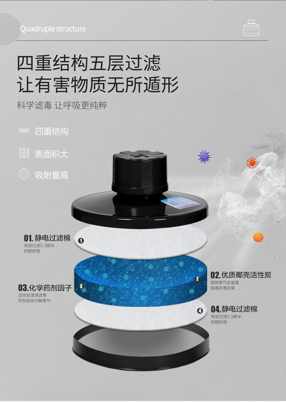 防護范圍:主要防護無機氣體或蒸汽,同時也可防護部分有機氣體