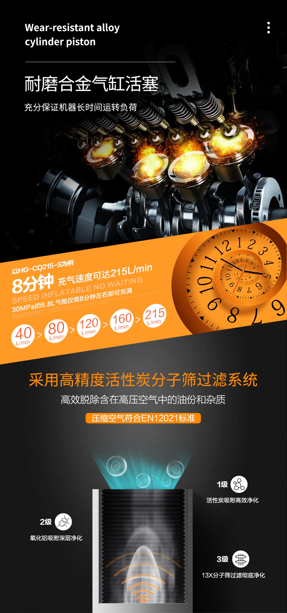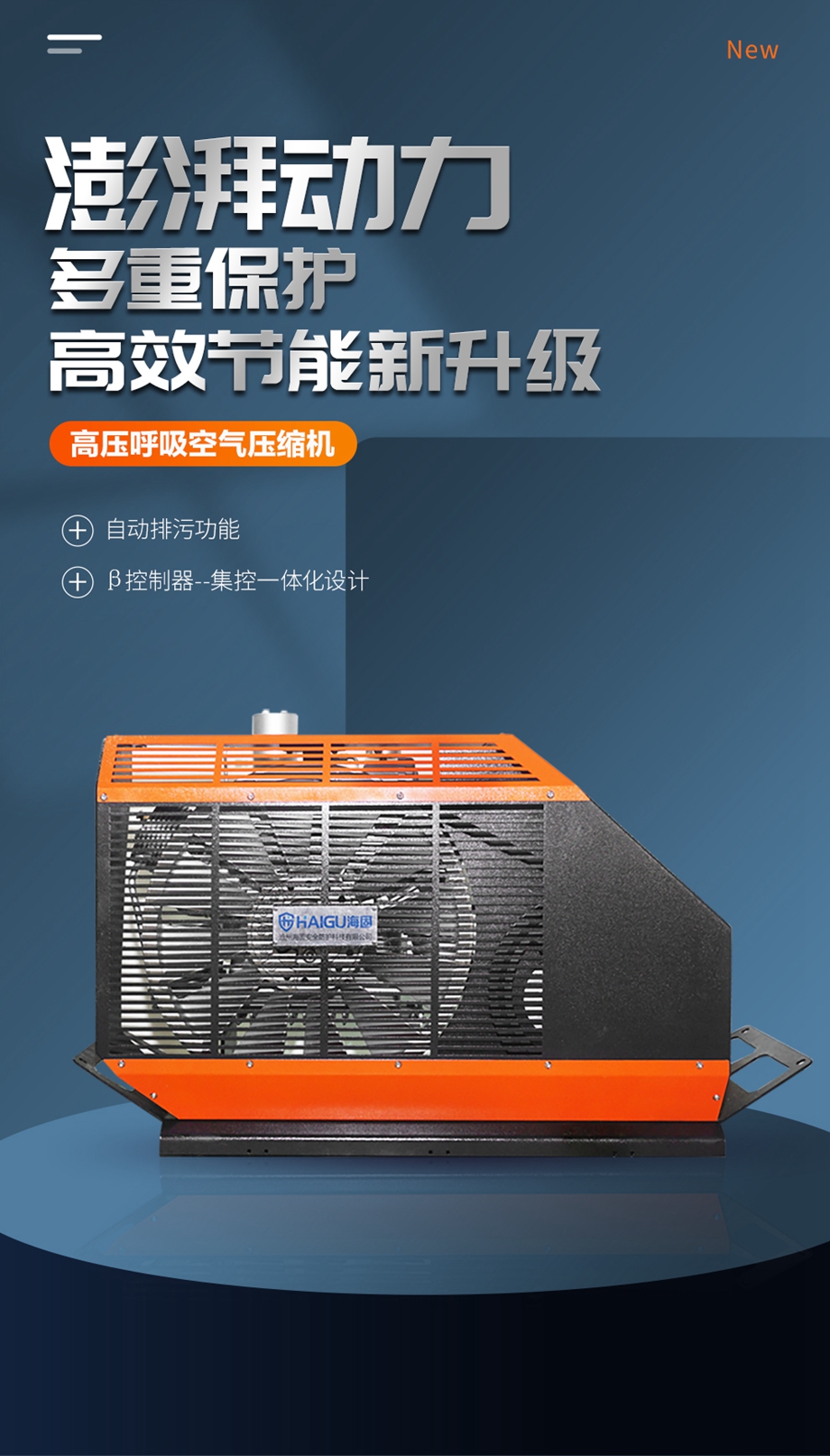 海固HG-CQ215/265/300-S高壓呼吸空氣壓縮機(定制款)新增自啟停和自動排污功能