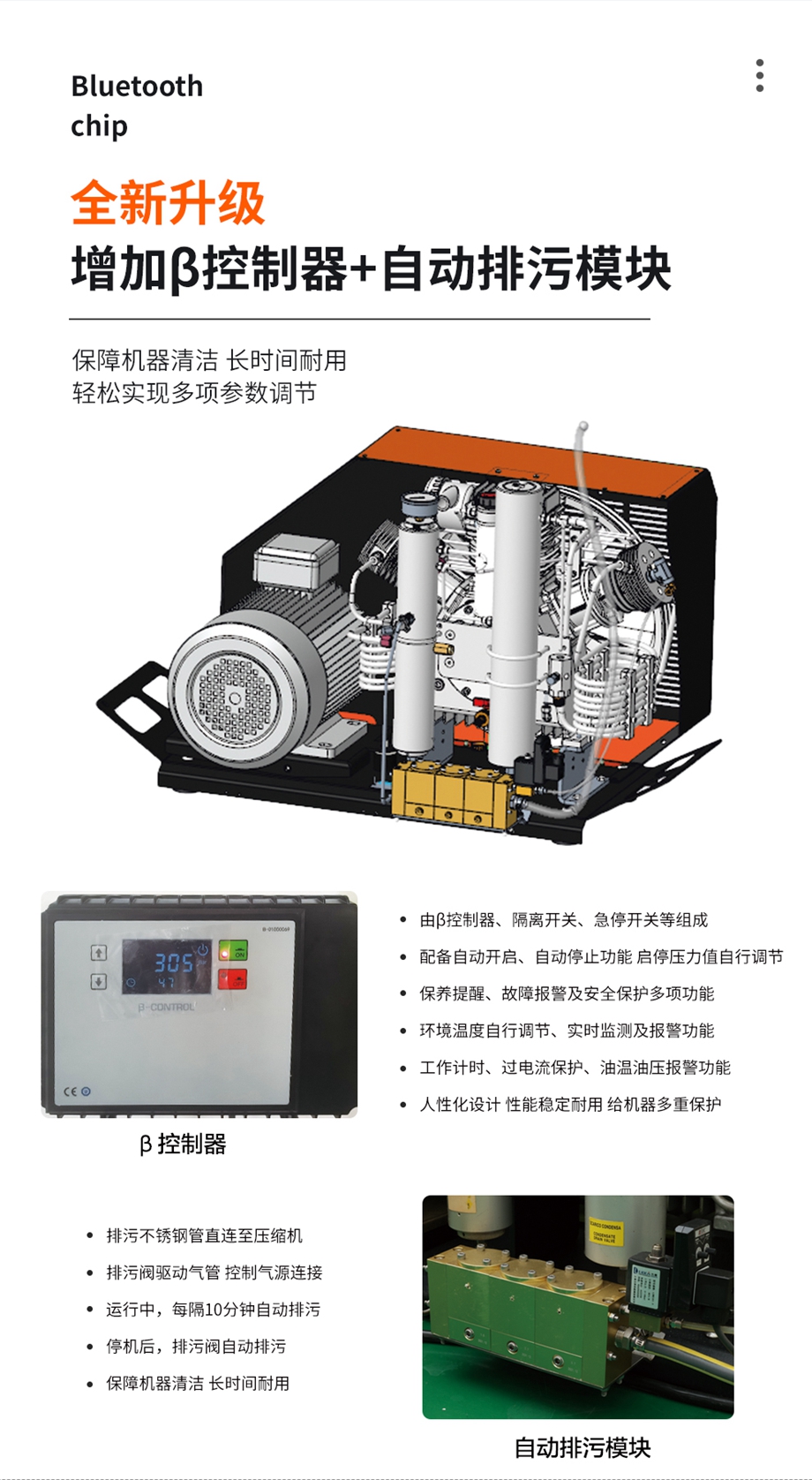 產品規格:380V 50HZ 4.0KW 三相電機 加裝β控制器和自動排污