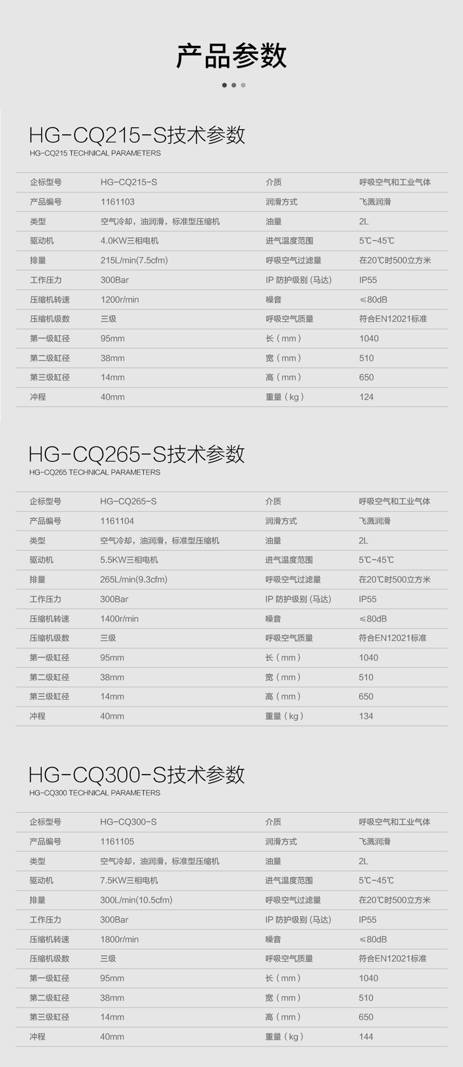 產品型號:HG-CQ215-S/HG-CQ265-S/HG-CQ300-S