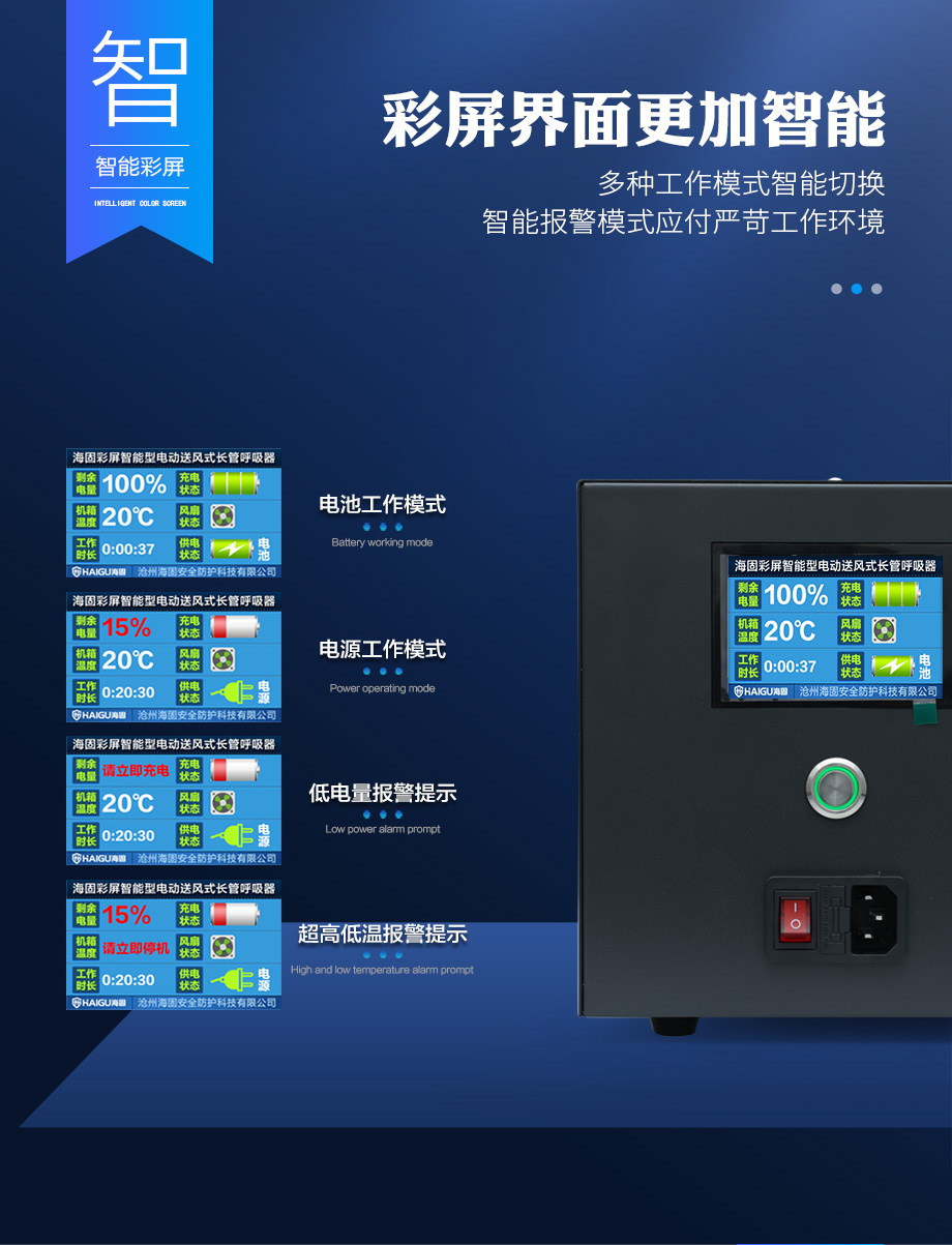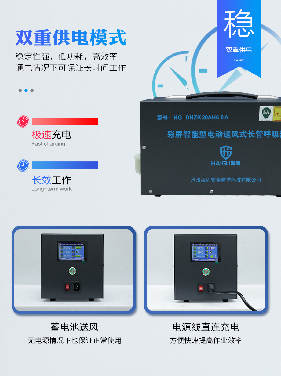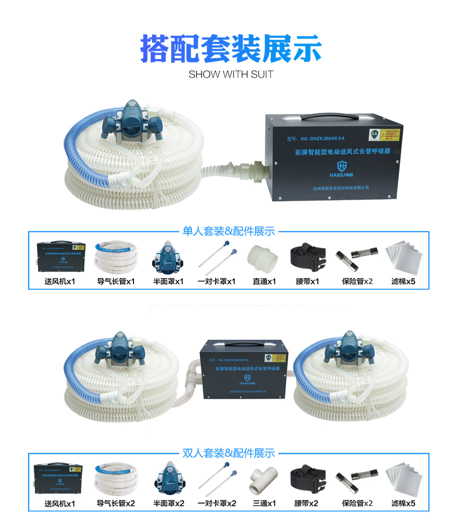 海固HG-DHZK20AH6.0A智能型彩屏 半面罩 雙人電動(dòng)送風(fēng)式長(zhǎng)管呼吸器
