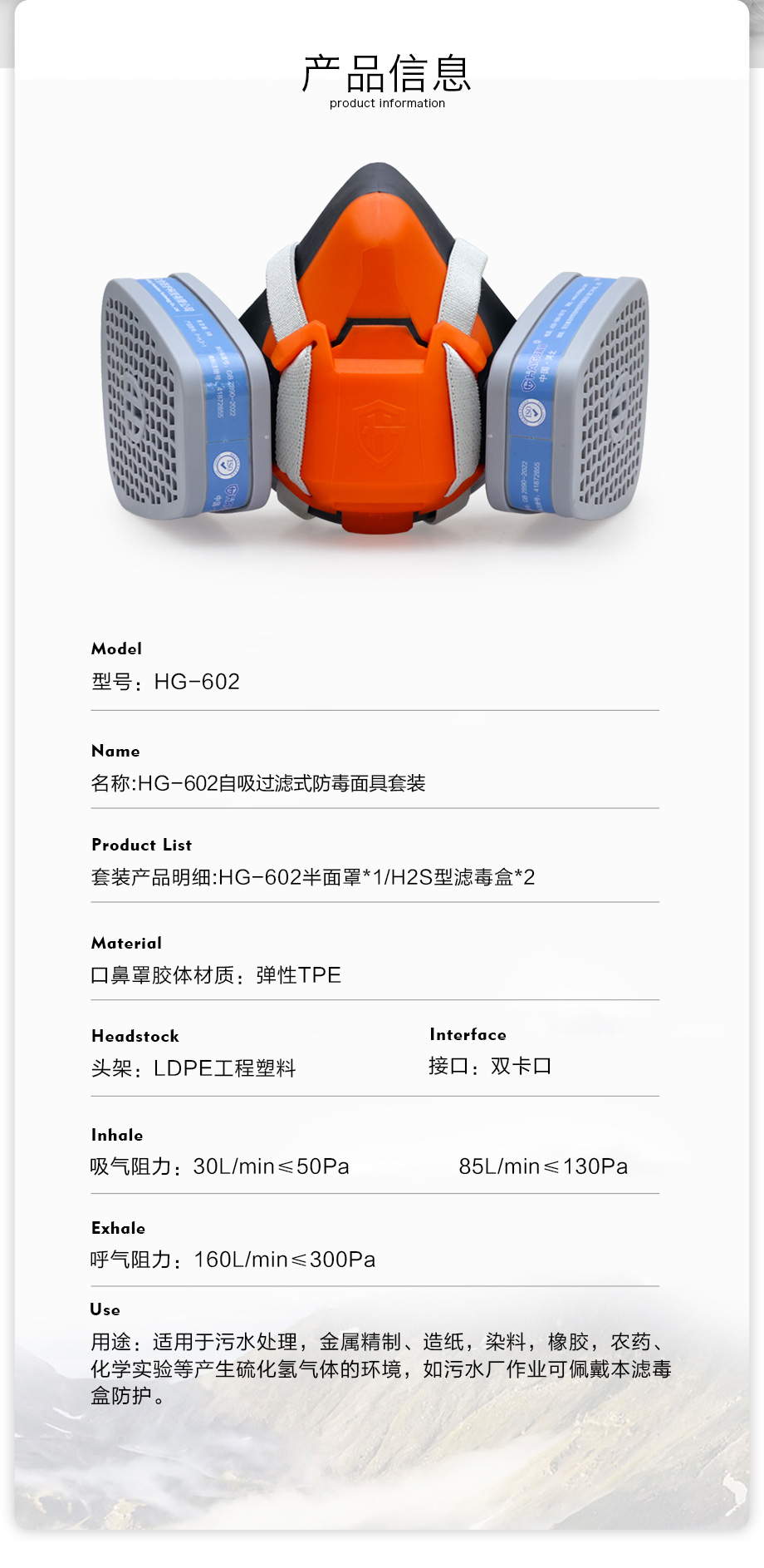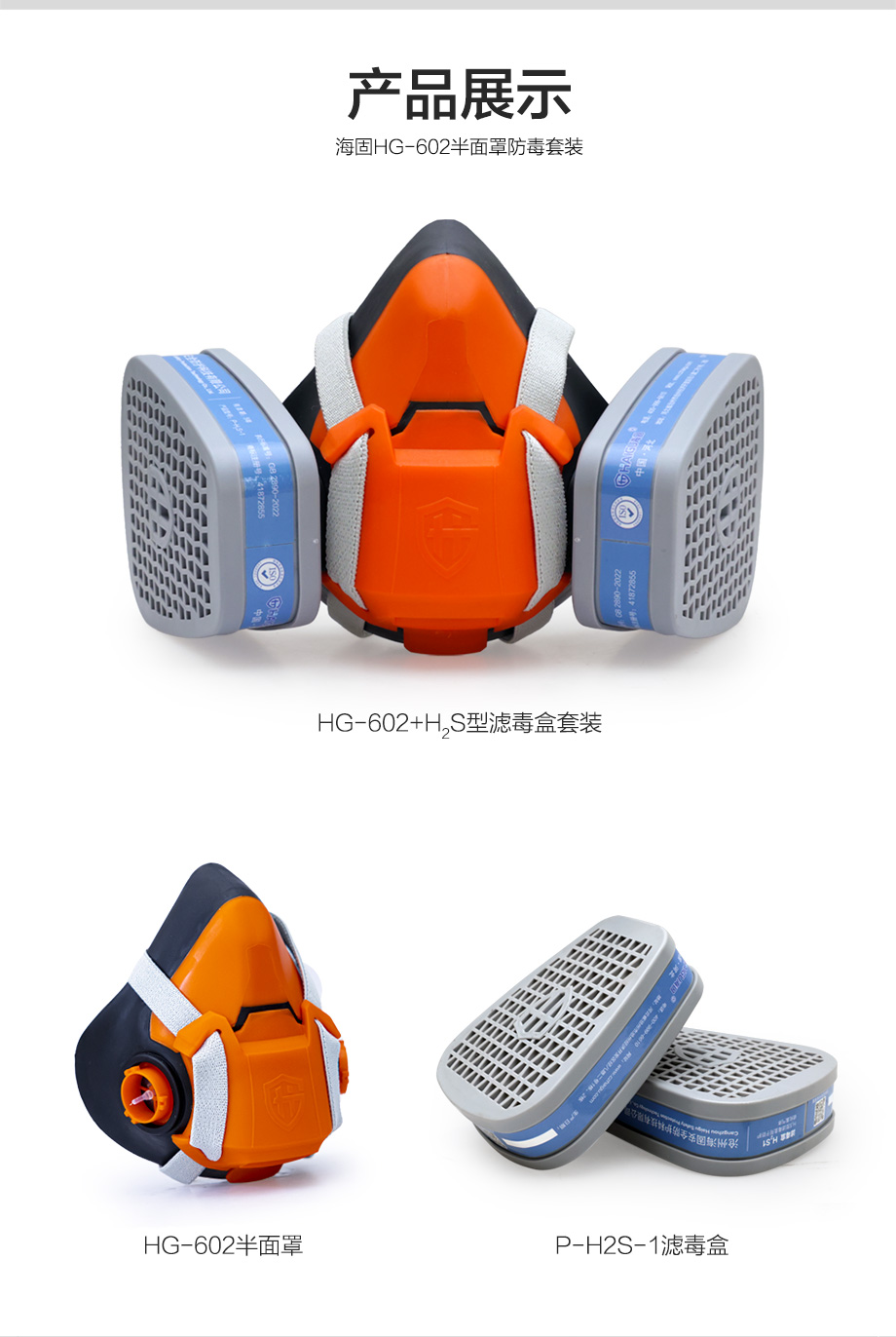 海固602半面罩+P-H2S-1濾毒盒 硫化氫防護套裝