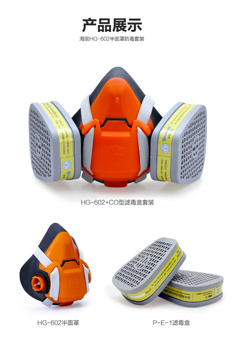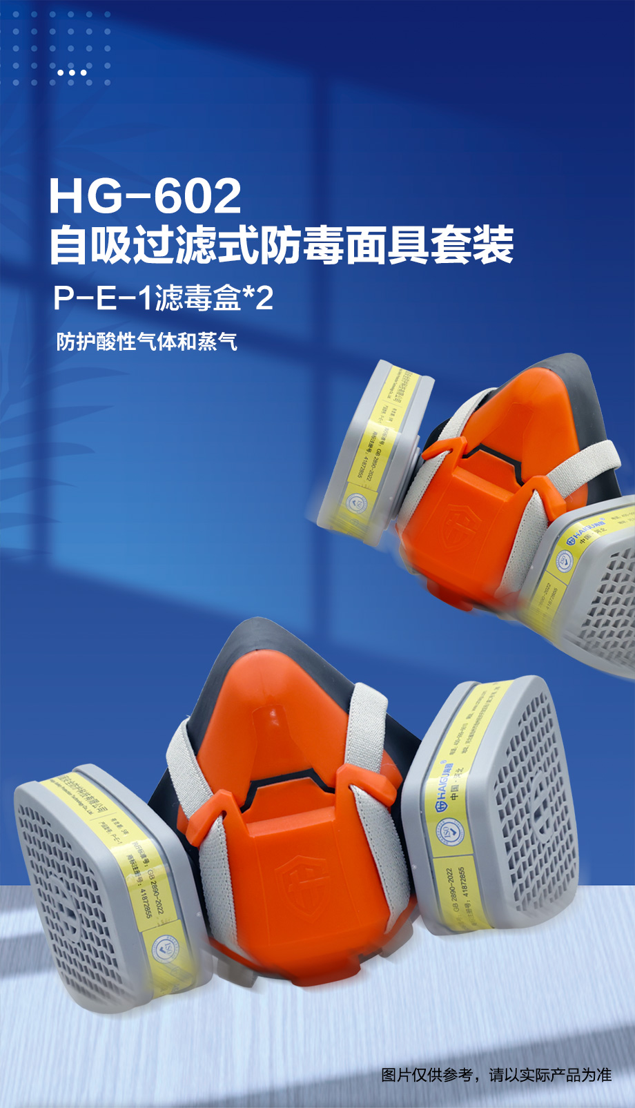 海固602半面罩+P-E-1濾毒盒 酸性氣體防護套裝