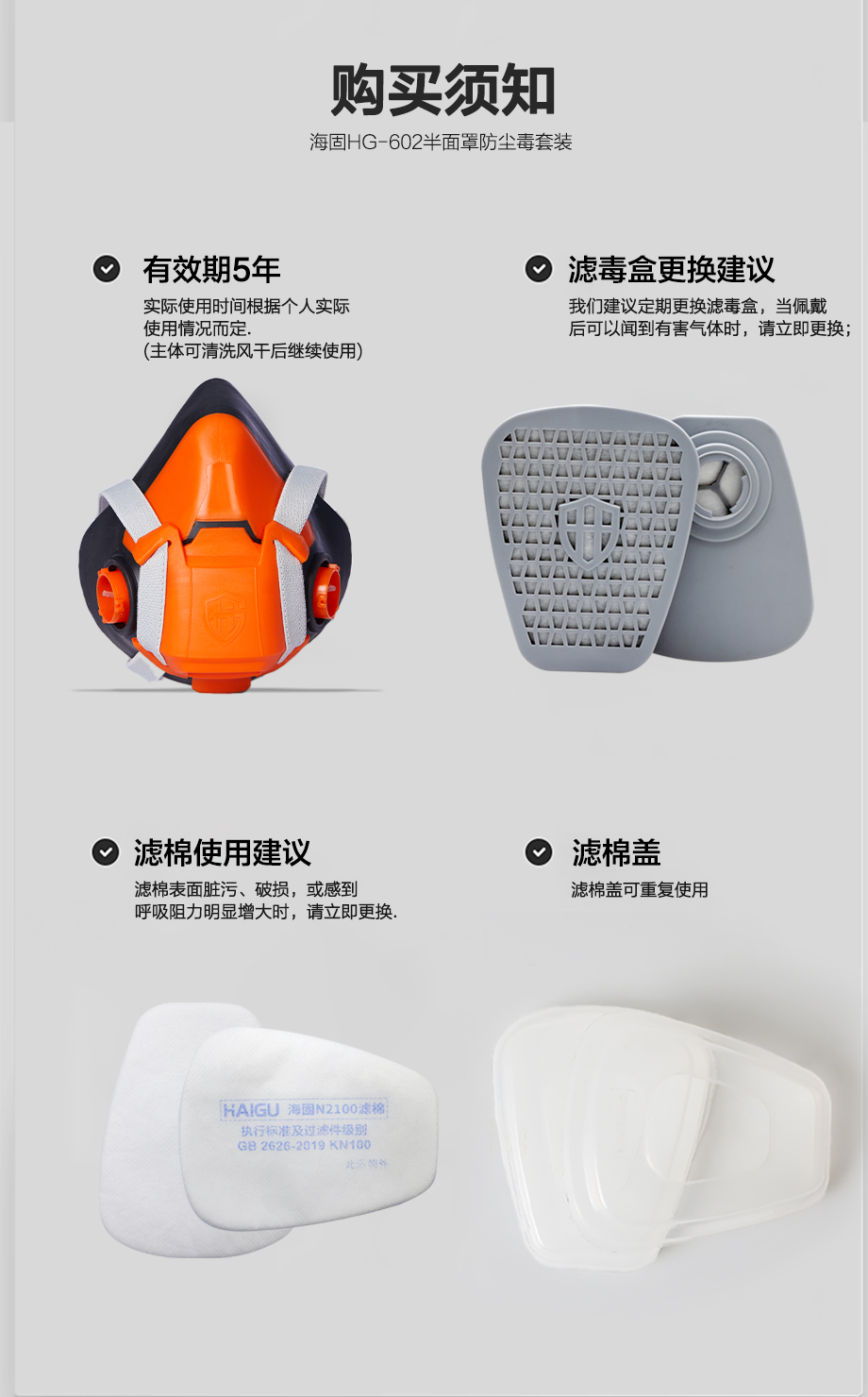 海固HG-602半面罩+P-K-1濾毒盒+濾棉+T型濾棉蓋 防塵毒套裝