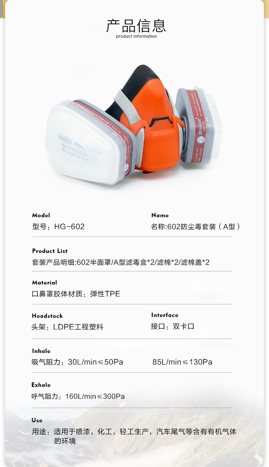 602半面罩防毒面具套裝