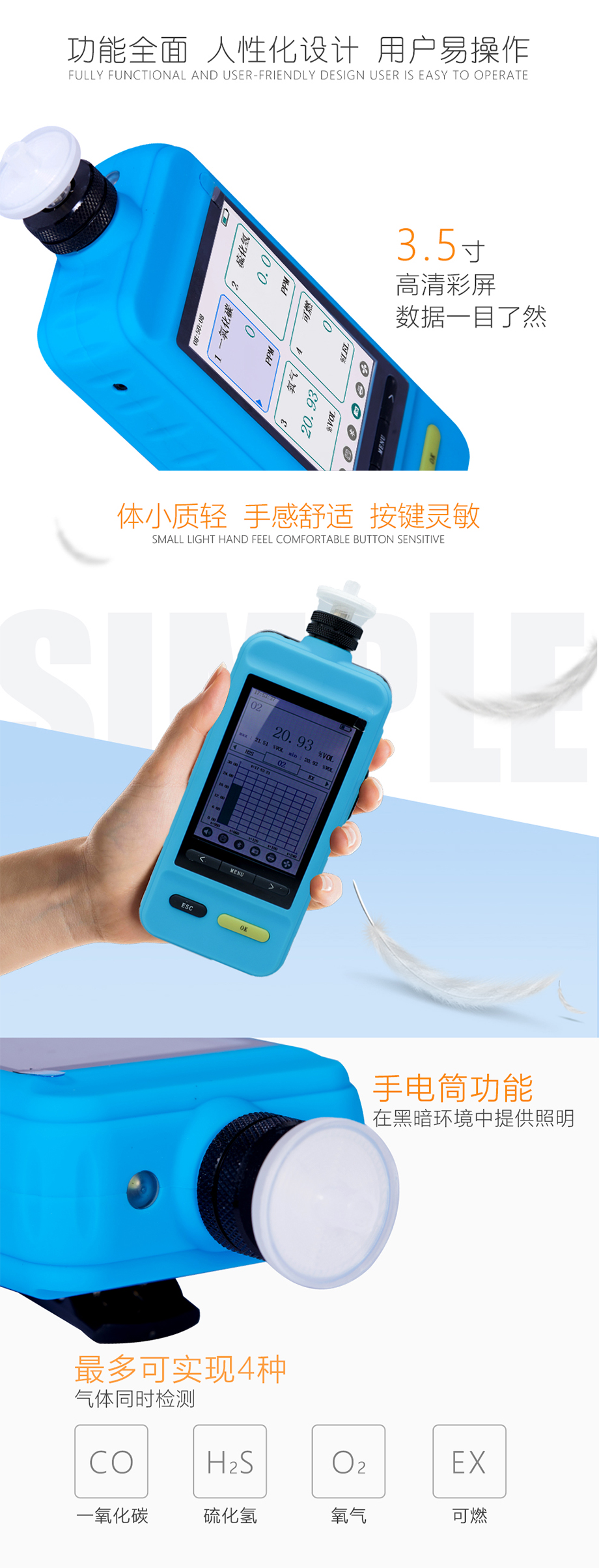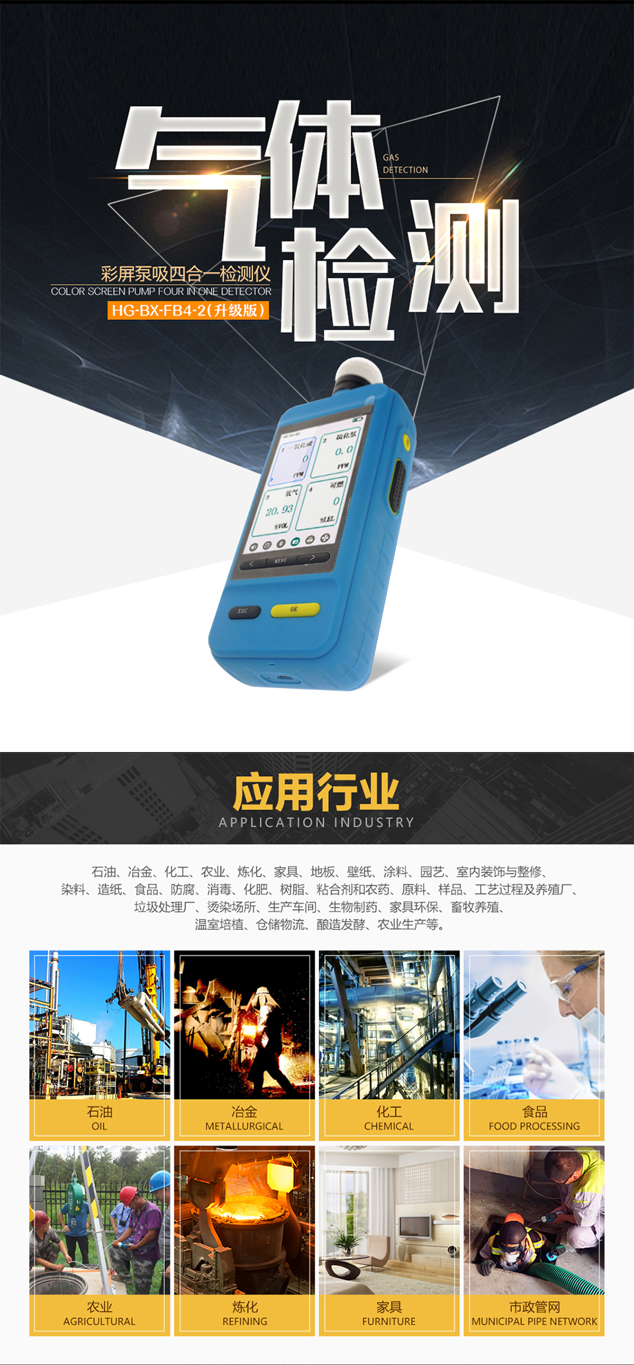 海固HG-BX-FB4-2彩屏泵吸四合一氣體檢測儀