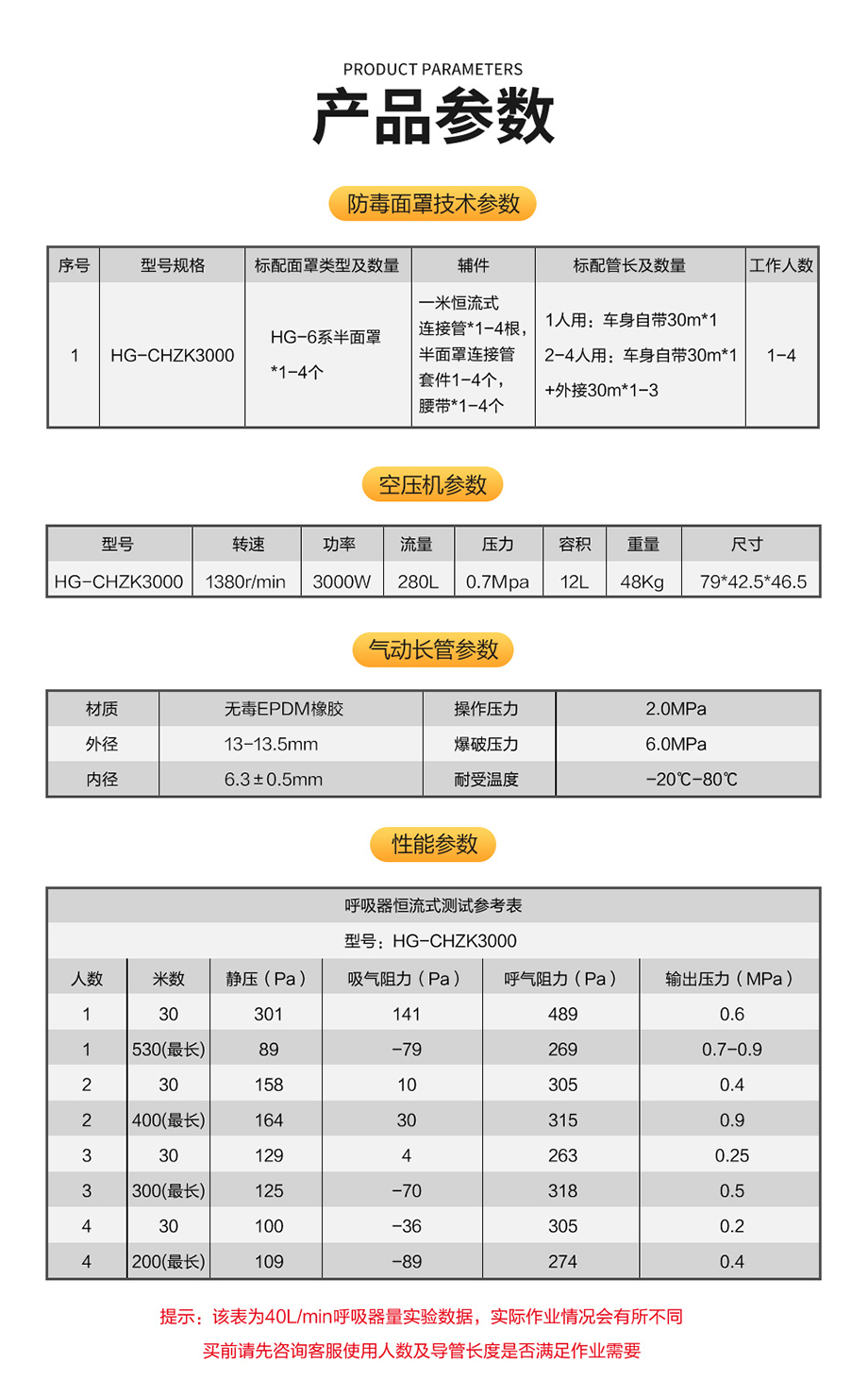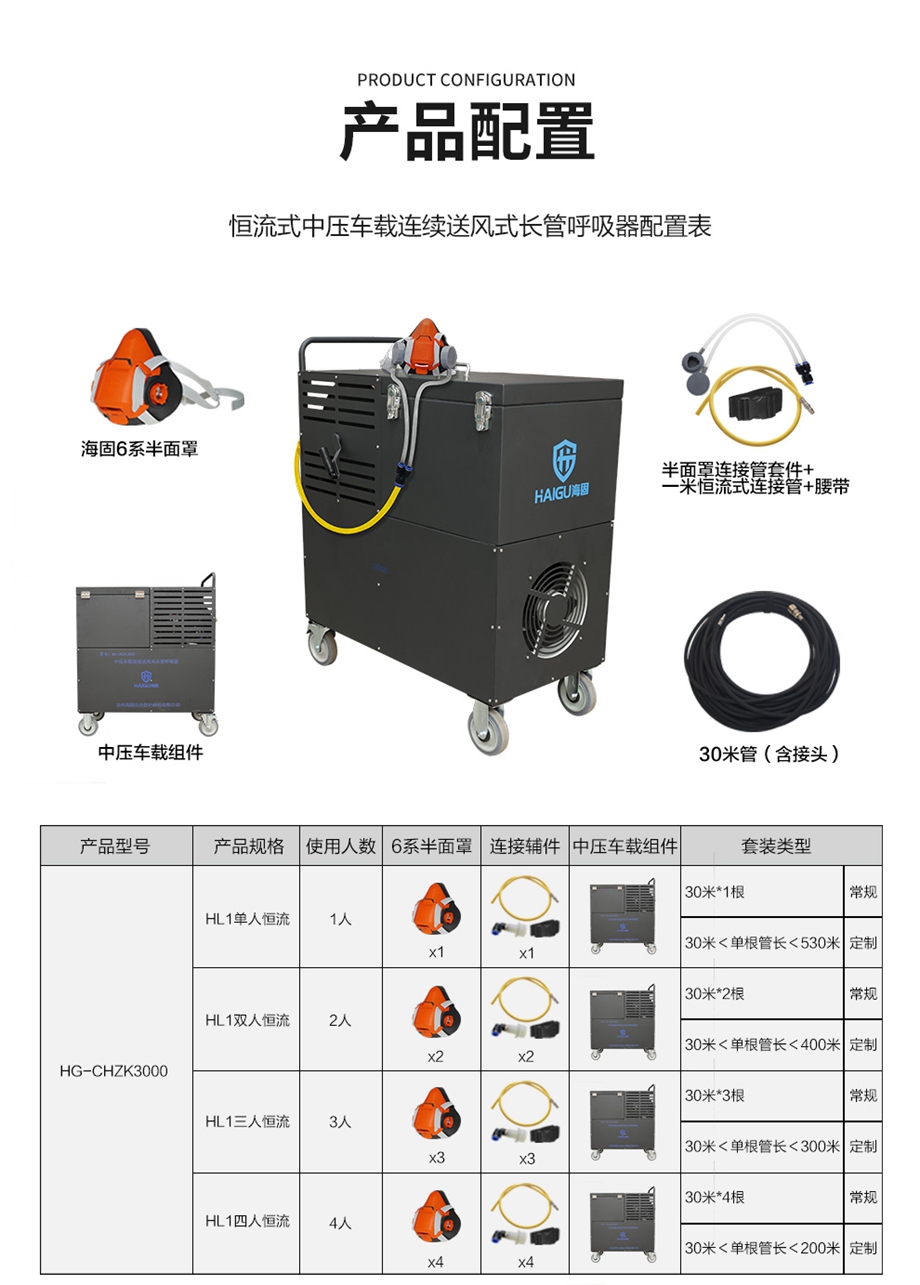 海固HG-CHZK3000搭配半面罩中壓車載連續送風式長管呼吸