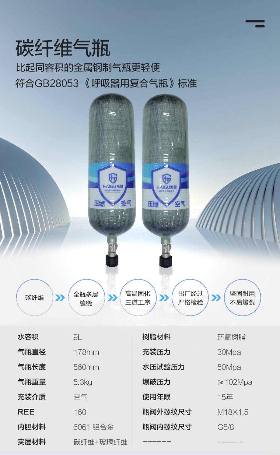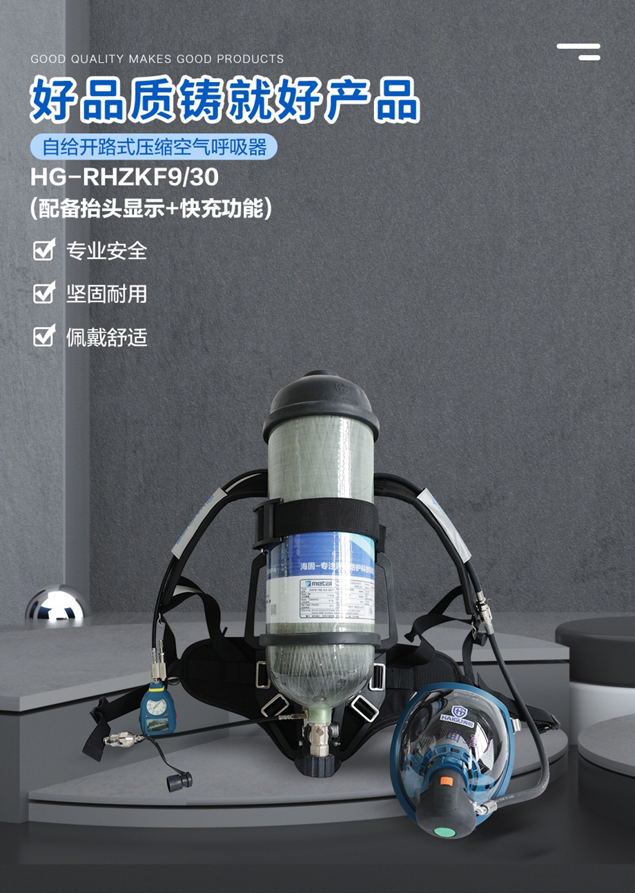 海固RHZKF9/30 正壓式空氣呼吸器 抬頭顯示+快充功能 碳纖維復合氣瓶
